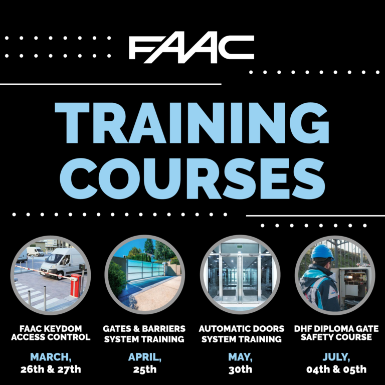 We're back in business for 2024, with dates now available for all product categories and for the DHF Gate Safety Diploma Course. Demand always outweighs supply so don't delay in booking your place on our next FAAC system training course or DHF Gate Safety Diploma Course.